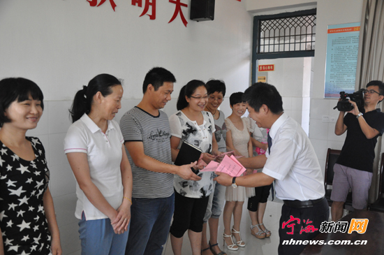 宁海新闻网讯 又到一年教师节。日前,县农村信用联社向我县两所民工子弟学校献上一份节日礼物——向131位教师发放慰问金,用实际行动感谢老师的付出和努力。(潘旭婷蒋佳颖摄)