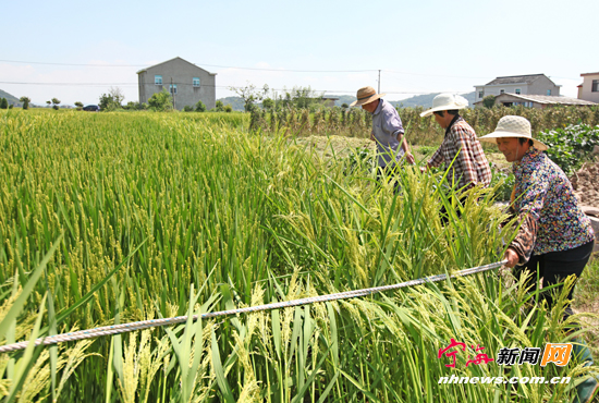 ![]() 宁海新闻网讯 时下正是种稻抽穗赶花授粉季节,9月16日上午,宁海县永丰水稻蔬菜专业合作社的社员们,拉着百米长的绳子忙于种稻赶花配种。据了解,该合作社是浙江省示范合作社,是省、市最大的种稻种植基地之一,种植面积达1000多亩,种有甬优538和甬优17号两个品种的种稻。 (李江林杨晨晓摄) |