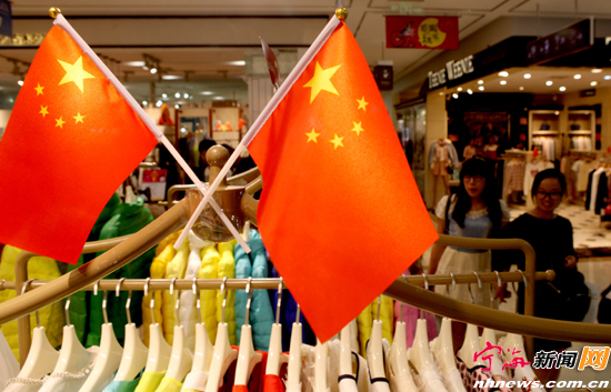 ![]() 国庆期间,街头、商场以及人们的手中,处处有鲜艳的五星红旗在舞动,洋溢着浓浓的国庆氛围。(记者 惠广亮 摄)