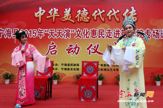 宁海新闻网讯日前,由县民政局、文广新局主办的2015“天天演”文化惠民走进敬老院专场巡演在县敬老院举行,京剧、越剧、小品、舞蹈等丰富多彩的节目,受到老人们的欢迎。 (李江林华建平摄)