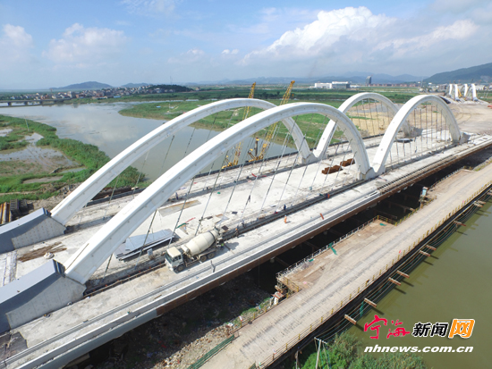 ![]() 宁海新闻网讯 近日,施工人员正在宁波南部滨海新区金海大桥及连接线工程紧张地扫尾作业。金海大桥位于茶院溪和力洋溪在毛屿港水库的交汇处,工程范围起于腾飞路交叉口,总投资3.7亿多元,大桥全长1.25公里(含大桥两座全长),并按城市主干道II级标准建设,目前大桥主体基本完工,预计到今年底新区金海大桥及连接线工程将全部完成。 (李江林董新旵摄) |