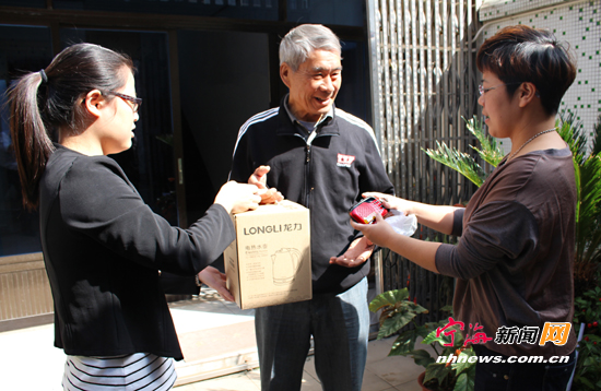 昨日上午,杏树社区工作者走访慰问了辖区近700名70岁以上的老年人,并送上保鲜碗等慰问品。 (李江林李奇奇摄)