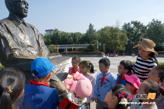 宁海新闻网讯 近日,潘天寿小学组织全校师生秋游。该校精选了城区的12个景点,按不同年龄段学生的需求分别选择游览,以丰富活动内容。图为一年级学生正在听老师讲述潘天寿爷爷的故事。