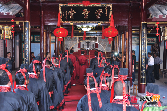记者王劲 颜燕燕 通讯员李品锋 ![]() 青山、古树、古屋……在力洋孔村村口驻足仰望,一景一物足以勾起到访者浓郁的人文情怀。村口的沥水溪欢腾而过,溪流碰到碎石不时发出回响,悄悄生长的石壁青苔在静静守望……古朴自然的乡村生活,四处可见的孔子名言名句,氛围浓厚的孔子文化,让人想要一探究竟。 村中心坐落着孔氏家庙,庙宇近几年由村里的孔氏后裔翻建维护,坐西向东,砖木石结构。门口高悬着一块“大成至圣殿”的匾额,象征着这里是曲阜南宗。每年,在孔庙前都会举办春秋公祭,宁海比较重视秋祭。每年的9月28日,是至圣先师孔夫子的诞辰,全国各地,每年都会在这一天前后举办规模不一的祭祀活动。这一天散居浙江省内的孔子后裔开始寻祖追宗,聚在一起进行较为隆重的祭孔仪式。其中组织者就有力洋孔村的孔子后裔。据了解,1998年,温岭市纪念孔子联谊会成立,每年的孔子诞辰日都会挑选一个地方举行祭孔大典。 将时间倒回到2013年9月28日,这是力洋孔村第二次轮到祭孔大典,规模比以往都大,是一次集乐、歌、舞、礼于一体的庙堂祭祀乐舞。 隆重的祭孔大典 参与祭孔仪式的孔氏后裔有500多人,他们有些是浙江孔氏后裔各个集聚地的南宗代表,部分是全国其他省市和海外的孔氏后裔的代表,还有一些国学专家与学者等。孔氏后人非常注重同祖同宗的传统,一般祭孔大典外孔和唯孔都无需出席。祭孔大典位列祖先朝拜的均为孔子的直系后裔,不是一般的与孔子同为孔氏,非出一支者不能一同参拜。 ![]() 到场的孔氏宗亲有序排列在仰高门(大成庙正门)外。参加公祭仪式的孔氏宗亲和社会各界代表需要着汉服,主祭和两位陪祭则穿绛红色的礼服,其余人穿的是黑色的礼服。公祭采用的是传统与现代相结合的祭祀流程,采用三献礼、九鞠躬制。 仪式开始时,击鼓撞钟,钟鼓齐鸣,参加典礼的代表在主祭者带领下先到春泥广场的孔子石像敬献圣水、圣土,而后回到庙前鸣赞依次唱“入庙行礼”、“启户”、“行扫除”等,于是大开正大门仰高门,众人鱼贯而入,入庙参加祭典。在入庙前,有老人先拿着扫帚在庙里作打扫状,此即“行扫除”也。 其后,执事者各司其事,“迎神”,髦生(旗手)举髦(旗),乐奏昭平之章,等开场舞演毕,然后“灌鬯”(香酒洒地)、“往迎”、“神降”、“分班”、“恭神”、“九鞠躬”。然后“奠帛”,行初献礼。起乐后,力洋小学的小学生们上台齐诵《论语》。其后,致祭者浴手后,司帛者捧帛、司香者捧香、司爵者捧爵,到至圣先师孔子神位前,上香,献帛,进爵,献爵。三鞠躬后,行亚献礼,乐奏秩平之章,髦生(旗手)举髦(旗)。然后,为前来观礼的宁波四中的学生们分批加冠授成人礼。 “令月吉日,始加元服。弃尔幼志,顺尔成德。寿考惟祺,介尔景福。维我中华,东亚之光,炎黄世胄,鸿图大同……中华弟子,天伦圆梦。进学受教,儒道为重。遵古礼行,仪节典范。诗书仪礼,实践于兹……”长者宣读古今结合的加冠祝词,随后,学生们宣读誓词,长者们作为加冠礼仪师,为他们一一颁发荣誉证书,上边写着“子曰:‘后生可畏,焉知来者之不如今也?’后来者居上,勉之哉!”的祝福语。 紧接着是终献环节,乐奏叙平之章,“彻馔”(撤走祭品),乐奏懿平之章,人们将牛头、全猪、全羊等祭品一一从供桌上撤下。最后是“送神”环节,乐奏德平之章,整个仪式差不多要持续3个小时。在这个过程中,村里其他各姓的人也发动起来帮忙,一起参与到纪念孔子活动中去。 “希望通过祭祀孔子的仪式,唤起更多年轻人追寻中华文化之根、国学之根、礼仪之源。”力洋孔村村党支部书记孔令柯(孔子第76代传人)告诉记者,通过祭祀仪式鼓励他们进一步了解历史、尊重传统、崇尚国学、尊尚礼仪。也希望通过挖掘孔子文化底蕴,把力洋孔村打造成文化旅游村。 孔子像后边,还有一座竹子搭的讲堂,人们可以在里面席地而坐,听老师讲解儒家经典。村里的几排老房子,收拾得较为别致,屋前屋边,种花种果,山村风情依旧,而村里还有小别墅型民居,展现出小村的富足。村里还有两株古树名木,都是枫香,其中一株在孔氏祖坟边上,有600年历史,另一株有450年左右历史,两株古树无言地述说着山村的故事。 力洋孔村尊孔、敬孔、祭孔的缘由,与其村落发展历史密不可分。 |