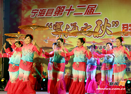宁海新闻网讯 近日,由深甽镇和西店镇共同组织的县第十二届“宁海之秋”群众文化艺术节在大里村举行。舞蹈、戏曲、小品、歌曲等众多丰富多彩的节目,吸引了邻村许多村民前来观看。