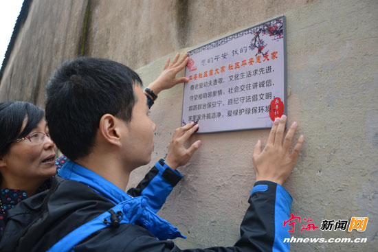 日前,跃龙街道五丰社区工作人员走巷串户,将一张张平安社区宣传板固定在墙体上,以加大平安社区宣传力度,增强广大居民人人参与平安社区建设意识。辖区部分居民看到社区工作人员忙碌的身影后,主动找出榔头、铁钉等工具。帮助社区固定宣传板。(李江林叶敏摄)