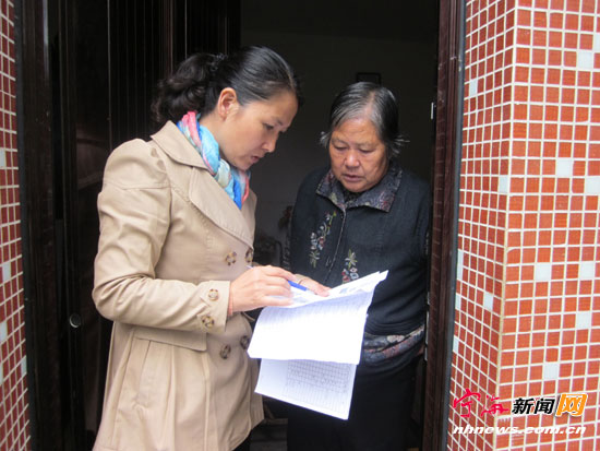 近日,为了做好社区残疾人辅助器材免费发放工作,湖西社区开展入户调查,摸清残疾人对辅助器具的需求并为他们办理申报事宜。(通讯员 郑虹摄)