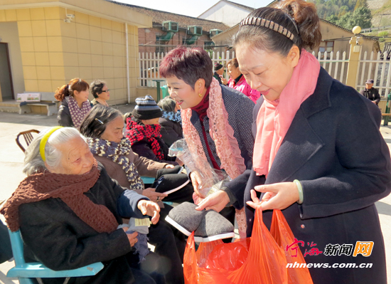 宁海新闻网讯 日前,宁海华庭社区组织近40名志愿者来到桑洲镇敬老院开展献爱心敬老活动。志愿者们不仅给老人们带去越剧、广场舞等文艺节目,还将自己亲手制成的围巾、棉鞋及袜子等赠送给70多名在这里安度晚年的老人,给他们带去了冬日里的温暖和关怀。 (李江林徐铭怿摄)