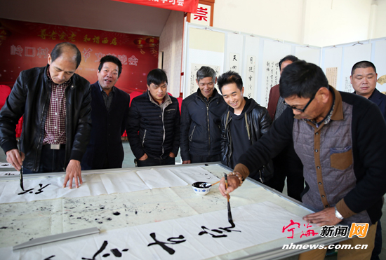 宁海新闻网讯 日前,西店回澜书画社的农民书画家们来到岭口村文化礼堂,以家风祖训为主题,创作了厚德载物、家和万事兴等作品四十余幅。 (李江林徐红燕摄)