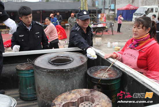 宁海新闻网讯 连日来,县综合执法局执法人员在城区整治无证早餐摊贩经营秩序。近日,我县城区第一批22家“放心早餐”推出后,受到了社会各界的广泛好评。为维护城区环境秩序和社会公平正义,县综合执法局加大了对无证流动摊贩的管理整治力度。(惠广亮陈立摄)