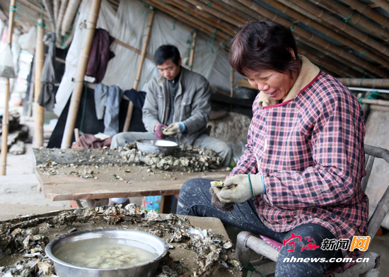 宁海新闻网讯 时下正是牡蛎上市季节。昨日上午,在西店镇铁江村海边码头,村民们在忙着挑牡蛎。据了解,由于多种原因,今年西店牡蛎产量比去年略有下降,价格却比去年上涨近三分之一。目前,每公斤批发价达40元,主要销往宁波、杭州、上海等市场。(李江林徐红燕摄)