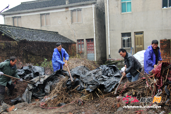 宁海新闻网讯 连日来,越溪乡利用冬闲时节农村劳动力充余之际,组织广大干部群众齐心协力全力开展辖区环境卫生综合大整治,并将整治工作纳入政府目标管理体系。图为越溪乡兴农村干群正在清理卫生死角。 (惠广亮章亚丽摄)