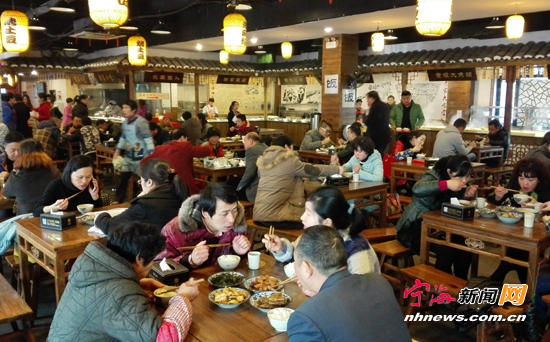 宁海新闻网讯 快餐吃腻了、饭店又偏贵,忙于都市生活的市民,想快速解决吃饭问题有点左右为难。今年来,介于快餐和家常菜之间的大食堂迅速走红宁海,这种标榜“大众消费、家的味道”的快餐新模式,生意十分火爆。(记者惠广亮摄)