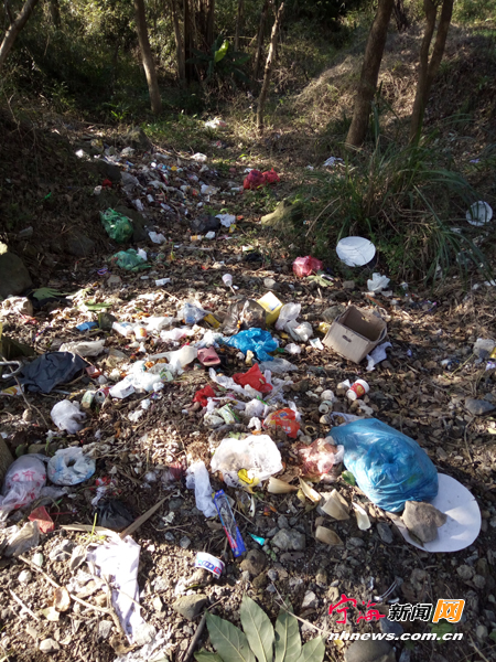 ![]() 越沙线上林村段垃圾 “越溪官长村公交站点外侧的垃圾较多,上下车的时候就能看见。站点外路面垃圾有人清理,但站点内侧却无人顾及。”近日,有市民反映,越溪乡多处垃圾点没能及时清理,影响村庄美观,给市民出行带来不便。接到反映后,记者驱车前往,一探究竟。 根据市民提供的地点,记者来到越溪乡官长村位于山脚的公交站点。站点位于两条盘山公路的交叉口,建造得略微简陋,仅由不锈钢柱搭建而成,没有顶棚遮盖,中间是一面广告牌。向远处望去,周围群山环绕,山间湖泊,水质清澈,景致非常美。然而,当记者走进站点往四周一看,发现站牌外侧山坡上却丢满了各种生活垃圾,香烟盒、易拉罐、零食包装袋、矿泉水瓶、尼龙绳……零散垃圾的下面是一堆枯败的落叶,十分显眼。记者继续沿公路行走,发现几处公路外侧的山坡上也零零散散地丢弃着一些垃圾,破损的白色尼龙袋挂在黑色的岩壁上,十分明显。 “公路上的垃圾有人清理,但像道路外侧,公交站牌附近的山坡上一般没人打扫。这处山道位于山间,风很大,而山坡上垃圾又较轻便,如不及时清理,被风吹到山下、湖边,就更难打扫了。”路边村民说。 记者沿公路继续前行,在山的另一侧发现了一个雨亭。雨亭中央的空地上,是一片烤完火的灰烬,地面被染得漆黑一片,灰烬上丢着许多零散的垃圾和纸屑。雨亭内的三面墙壁上,写满了不同颜色、粗细的电话号码和文字,看上去十分脏乱。雨亭右侧是一条山路,山路的一边堆砌着一丛废砖。路人告诉记者,这是一处建筑损坏后遗留下的砖块,一直丢在这里,无人清理。 离开盘山公路后,记者驱车沿越沙线行驶,在上林村公路对面的树丛中,记者又发现了一处垃圾点。此处垃圾点位于路边山林的入口处,一眼望去,整一条山路都是满满的垃圾,俨然成了一个临时垃圾场,比上述两个地点严重许多。衣服、塑料袋、纸板箱、零食包装袋……甚至还有整袋整袋的村民生活垃圾,与周边苍翠的树丛相比,显得格格不入。 相关部门对这三处垃圾点是否会进行彻底清理,今后日常监管如何落实,本报将继续关注。 (本报记者) |