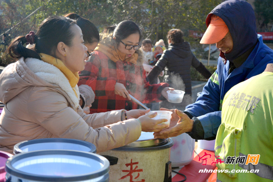宁海新闻网讯 近日,跃龙街道杜鹃社区组织志愿者开展了“情暖冬至关爱环卫工人”活动,为辖区垃圾中转站的环卫工人们送上冬至汤圆及生活用品。