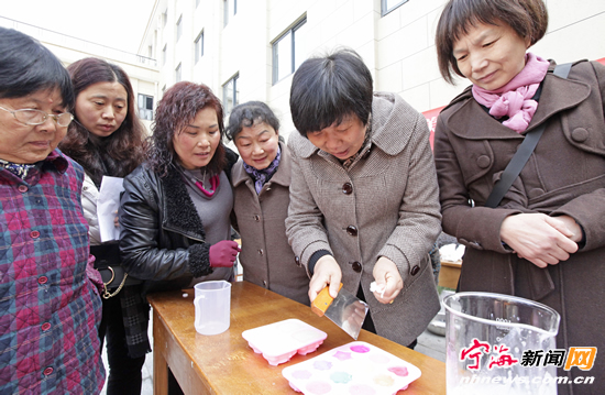 据宁海新闻网 昨日上午,跃龙街道车河社区开展“环保携手,共筑爱心”美丽工坊妇女联谊活动,50多名辖区妇女聚在一起学制100多块手工皂,既活跃了节日氛围,又提升了环保意识。 (记者李江林通讯员陈祎祺摄)