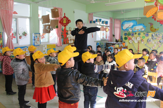 宁海新闻网讯 日前,西店镇中心幼儿园的校外辅导员邬警官走进中班课堂,为孩子们上了一堂生动的交通安全课。邬警官结合PPT,用生动的语言向孩子们介绍如何走斑马线、安全乘车等交通安全知识,还带领孩子们做交通指挥手势。 (记者陈静珠通讯员魏燕摄)