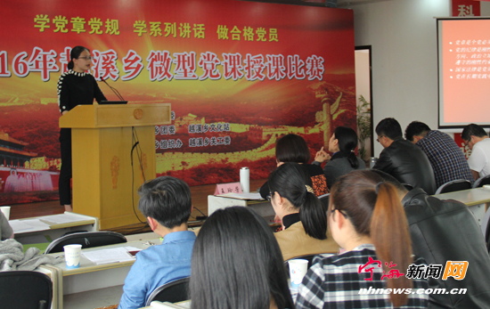 ![]() 连日来,为推动全面从严治党向基层延伸,巩固拓展党的群众路线教育实践活动和“三严三实”专题教育成果,我县各地各部门相继举行了以“学党章党规学系列讲话做合格党员”为主题的微型党课授课比赛。图为4月13日越溪乡举行的微型党课授课决赛现场,选手结合自身工作实际,给在场的党员演示了精彩生动的微型党课。 (记者惠广亮通讯员章亚丽摄) |