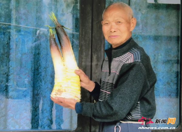 深甽镇龙宫村村民陈宏生日前在山皇岭杨家坑挖到一株笋,两个头,他舍不得吃掉,捧到老年协会,大家一看都说稀奇。