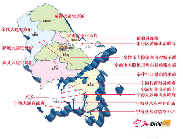 宁波葛洪文化遗存和葛洪文化研究 一、宁波葛洪后裔衍播 1、以宁海为中心的宁波各地,是全国最大和宗谱记载最详尽的葛洪后裔聚居地。根据2003年统计,宁波全市户籍葛性38960人。调查尚未发现非葛洪裔孙或族孙的葛氏宗谱。其中,宁海县户籍葛性24730人中,葛洪裔孙22700余人,族孙约2000人。全市葛洪裔孙逾35000人。 宁海葛洪后裔以西阳葛氏为主。根据南宋宰相叶梦鼎所撰《西阳葛氏宗谱》载,葛洪次子葛勋迁居金华东阳,其五世孙葛常之迁居宁海西阳(今岔路镇),为西阳葛氏始祖。西阳葛氏最大支脉是泉水葛氏,葛常之的十三世孙“小三”为泉水葛氏始祖。明代的西阳宗谱序称,葛勋直接定居宁海。 葛洪长子葛渤的四世孙葛丕侍,卒于宁海浮门巡检司任上,其后定居宁海南岙(今属三门)。明洪武初年葛丕侍二十四世孙葛红武偕两弟由象山迁居宁海桑洲,为前山葛氏始祖。 宁波市的老三区、鄞州、镇海、北仑、余姚、慈溪、奉化、象山,均有葛洪后裔聚居,多系宁海迁来。宗谱记载,宁海葛洪后裔,还直接迁往天台、三门、临海、黄岩、绍兴、嵊州、杭州和云南等地。 2、公元1119年,宋徽宗敕封宁波六地葛氏宗族,确立了葛洪后裔传承唯一的国家法定地位。 宋徽宗史称道君皇帝,文史渊博。其关注葛洪及其后裔,事属当然。根据天一阁馆藏的鄞县《四明葛氏宗谱》所载,宣和元年正月十六日颁发的《宋徽宗御敕》敕封葛氏宗族:宁海大通宣威府、鄞县大通宣显府、鄞城大通宣尹府、余姚大通宣真府、慈溪大通宣原府、定海大通宣承府。文房分住宁海珠开乡新宁,行房分住鄞县西南光同、勾章,忠房分住鄞城坊隅、余姚龙泉、慈溪西屿和金川,定海灵岩。 二、宁波葛洪文化遗存 1、宁波的葛洪文化遗迹 宁海县岔路镇的“学士坪”,尚存葛洪丹房遗址和丹井。南宋储国秀《宁海县赋》称,“曰桐柏则有葛稚川之丹房”即此。各个宗谱多记载葛洪在学士坪炼丹事迹。宁海的水车井山庙、妙峰山灵峰庵、西阳灵峰庵和茶山灵峰寺,都是奉祀葛洪之地。 在奉化江口的甬山清水庵,殿侧的葛仙洞存有古碑,供奉葛洪塑像,香火旺盛,还有炼丹灶和药臼,僧人对葛仙翁传说如数家珍。余姚市大隐镇里埠头村的谢山庙,有葛仙翁殿,旁千年古樟,树下有葛洪丹井。在大隐镇章山村狮子潭西北,有纪念葛洪的仙人洞和药臼。在北仑灵峰山的灵峰寺,建有供奉葛洪的葛仙殿。灵峰山因众多葛洪遗存和广泛民间信仰,号称“第一灵山”。 2、宁波民间的葛洪信仰 葛洪隐居北仑旧“瓶壶山”炼丹时,宁波瘟疫流行。葛洪采集草药,为民治病防疫,挽救生灵。因“葛仙翁灵丹妙药”,故称捣药山岩为“灵岩”,山名“灵峰”。灵峰寺建有“葛仙殿”。灵峰寺葛洪信仰,据记载最晚自唐代已经形成,千百年来,民众朝拜长盛不衰。每年四月初一至初十和五月初五的香期,灵峰道上,寺内寺外,山上山下,坐满香客。入夜,烛光扶摇,蜿蜒山间,九昼夜不息。香客来自浙东镇海、鄞县、慈溪、余姚、奉化、象山、上虞、宁海和舟山等地。人们重金购买一种“葛牒”带回去郑重收藏,以备应付“急难”,据说能祛病去灾,保佑平安。1925年,取当年香期葛牒收入5万元,兴建山下“灵山学校“(今邬隘中学)。宁波民间的葛洪信仰,2012年被批准确认为浙江省非物质文化遗产项目,目前正在组织申报国家非物质文化遗产项目。 三、宁海葛洪文化研究 宁海县系统开展葛洪文化研究,已有十余年历史。由宁海县和浙江大学文学院联合发起,经中宣部和文化部批准,“首届葛洪与中国文化国际学术研讨会”于2003年11月8日至10日在宁海举行。与会代表200余人,其中港台和国外代表27人。会议交流论文119篇。会议协商成立“中华葛洪文化研究会(筹委会)”,并就后续全国会议作出安排,有力地促进了我国的葛洪文化研究工作。陆续在江苏句容、浙江杭州、广东罗浮山召开了全国性的研讨会。宁海县葛洪文化研究会,近期已就宁海葛洪文化节、葛洪文化网站、宁波葛洪后裔衍播研究等各方面深入开展工作。 ![]() 宁波葛洪文化遗存分布图 全国各地的葛洪文化遗存简介 广东省的罗浮山,是葛洪最重要的修炼地,是中国道教南传的大本营。有葛洪洗药池,丹灶,南、西、北三庵等旧址。冲虚观在原南庵,为道教“第七洞天”。黄龙观在原西庵,是罗浮山最宏伟的道观。酥醒观在原北庵,正殿供奉雷祖、吕洞宾和葛洪三祖。广东省的葛洪文化遗存,还有佛山的丹灶镇、广州的浮邱丹井和白云仙馆、怀集县的花石洞、龙川的霍山和霞浦县的葛洪山。 江西是葛洪最重要的修炼地之一。玉山县的三清山,以葛洪为开山祖师,遗迹众多。樟树市的閤皂山,属道教三十六福地;葛家道的灵宝派以此为祖庭。江西的葛洪文化遗存,还有新余的洪阳洞和百丈峰、萍乡的武功山、宜春的明月山、抚州的麻始山、修水的梅山、洪州的西山和峡江的玉笛山等。 江苏句容城里有葛仙观,茅山有“抱朴峰”。江苏葛洪文化遗存,还有无锡马山、睢宁的葛峄山、南京的方山和邳州的距山等。 杭州有纪念葛洪的葛岭、抱朴道院、初阳台、葛坞、富阳的葛仙洞等。浙江的葛洪文化遗存,还有天台的天台山和赤城山,金华的金华山和九峰山,永康的葛仙官功宫,缙云的葛山、葛坑和葛竹山的葛仙翁庙,舟山普陀的仙人井和翁山,绍兴的吼山和重阳宫以及宁波各地遗存。 葛洪曾