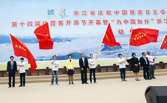 开游啦,开游啦,“癸丑之三月晦,自宁海出西门,云散日朗,人意山光,俱有喜态……”“5•19”是“中国旅游日”。今天上午,中国旅游日纪念活动——第十四届徐霞客开游节在中国旅游日发祥地宁海县盛大开幕。“我为中国加分”浙江文明旅游公益行动同时启动。(摄影 李江林)