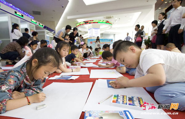 宁海新闻网讯 前日上午,宁海农商行与宁波亚太酒店物业有限公司金融中心管理处联合举行“农村商业银行杯”“我心中的金融中心”庆六一绘画比赛。数十名幼儿与少儿在父母的带领下参加了比赛。 (记者李江林通讯员倪中杰摄)