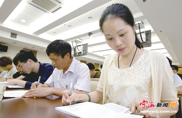 ![]() 宁海新闻网讯 近日,100多名来自长街、力洋、胡陈等乡镇的预备党员齐聚县党群服务中心,参加由县委组织部组织的“党章学堂”第一期学习培训。为扎实开展“两学一做”,不断提升党员干部的党性修养,县委组织部将通过“党章学堂”的形式,全面指导乡镇(街道)党员集中轮训,让全县近4万名党员有个固定“补钙、吸氧、壮骨”的常态化阵地,让红色教育细水长流。图为预备党员抄写党章。 (记者李江林通讯员丁玲丹摄) |