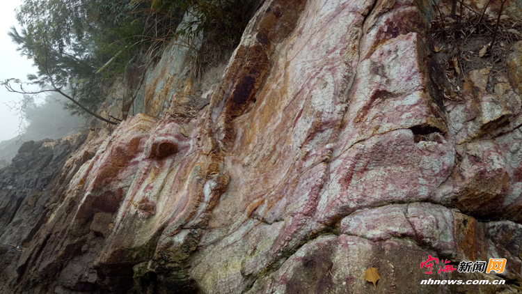 在现场看到,此座石壁长约200米,最高约10米,色彩斑斓,犹如一巨幅西域古画。据专家介绍说,由于地下炽热翻滚的岩浆沿着地壳裂口间歇地溢出地表,形成小山,继而向低处流淌,冷凝后便形成了一处高于地表的流纹斑岩小火山地形。1亿4千万年来,随着后期地壳的挤压和海港的形成,靠海港一侧的破碎岩石被海水冲蚀、风化,逐渐形成石壁地形,在海水等外营力的改造下,岩石发生了蚀变,金属元素等发生了变化,因此呈现出如今的色彩斑斓。虽然时隔上亿年,但岩石弯曲的形状仍然呈现着当时岩浆流动的情形。地质专家考察后认为,这幅“巨画”是大自然中的岩浆流动、地壳破碎、海水冲蚀共同造成的产物。该五彩石壁的发现,对我县火山形成、地质科普、旅游观赏具有一定的价值,有关部门也希望广大地质爱好者进一步探索个中奥秘。
