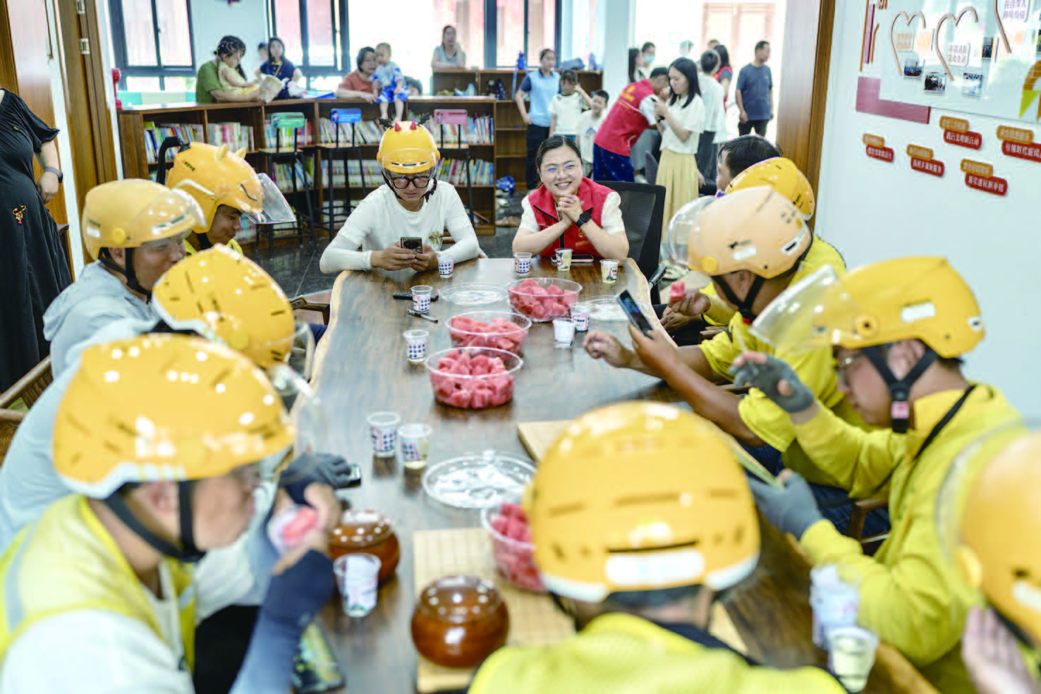 社区的温情,不仅萦绕在居民身边,更延伸到街头巷尾的户外劳动者心间。暑假伊始,宁海路廊车河站正式运营,这个依托百年“宁海路廊”精神打造的服务站点,成为快递员、外卖骑手、环卫工人的“夏日避风港”——免费检修车辆、供应解暑凉茶、提供爱心理发与推拿按摩,“歇脚茶话会”区域还能让大家坐下来聊聊天、歇歇脚。与此同时,社区网格员也提着“清凉礼包”走上街头,将藿香正气水、清凉油等防暑用品送到户外劳动者手中,让流动的温暖驱散夏日的燥热。