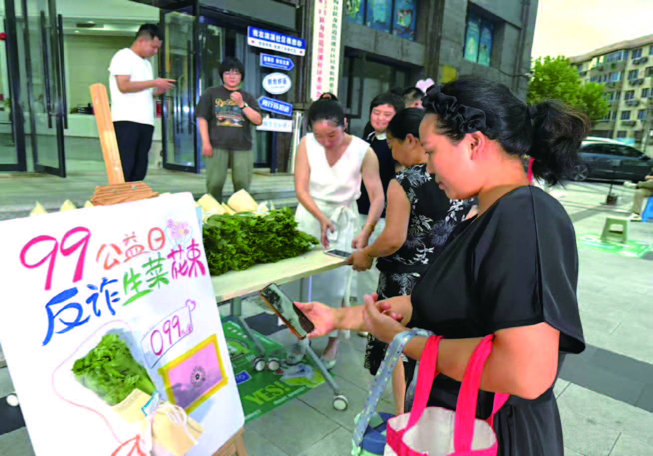 热闹之余,社区网格员还忙着推广“反诈生菜花”,翠绿的生菜叶被精心包装成鲜花模样,搭配印有警示语的“反诈明白卡”,成了独特的反诈宣传品。“收到陌生转账别轻易点,涉及钱财多核实!”网格员一边递出生菜花,一边耐心讲解反诈知识,居民们接过“花”认真聆听,不少人还拿出手机记录要点,将安全意识悄悄记在心里。
